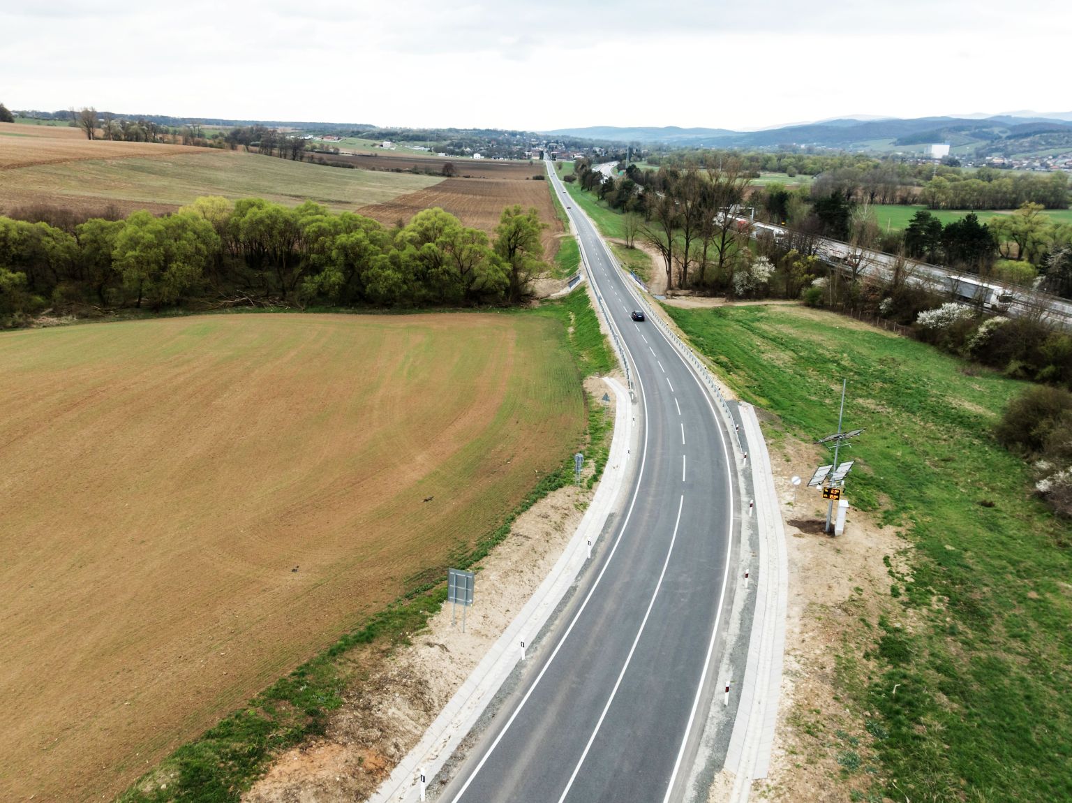 Inštalácia bezpečnostných prvkov, ako sú zvodidlá, smerové stĺpiky a nové dopravné značenie.